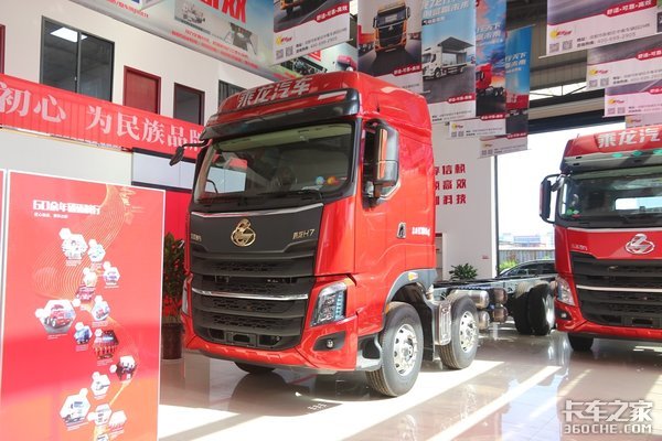 这款乘龙H7载货车采用四轴8x4驱动形式,载货量比6米8单桥中卡、三轴货车更有优势,在下乡间泥地拉水果、蔬菜等复杂工况时,单车行驶的灵活性也要明显好于牵引车。因此,在绿通运输载货车行列当中,8x4车型一直都充当着主力军。