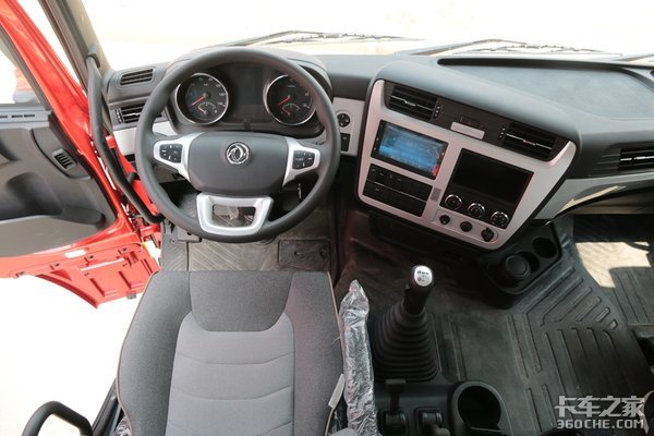 这款车传动系统匹配沃尔沃技术的DT1422 OD手动变速箱,带14个挡位,头挡速比13.513,最高挡速比为0.801。当然,还可选择直接挡变速箱或是龙擎AMT变速器,型号为东风DA1422DD,以及选装福伊特液力缓速器。