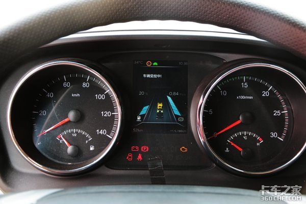 炮筒式仪表盘搭配液晶屏组合,点亮后效果特别满意,可查询车辆里程、气压、轴荷、油耗等数据。