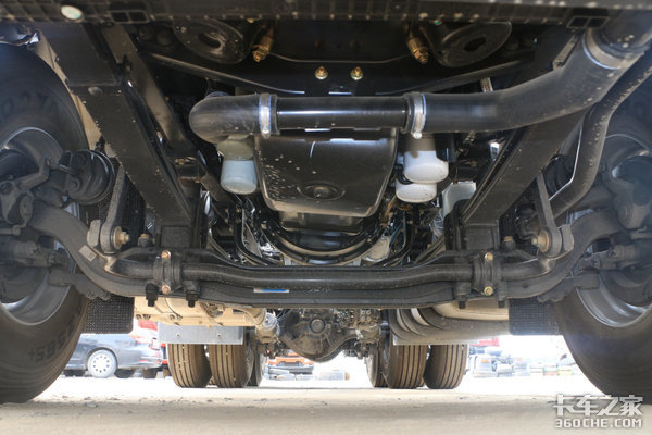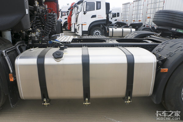 车辆左侧配备了一个800升的铝合油箱,铝合金抗腐蚀强,自重更轻,可起到轻量化作用。