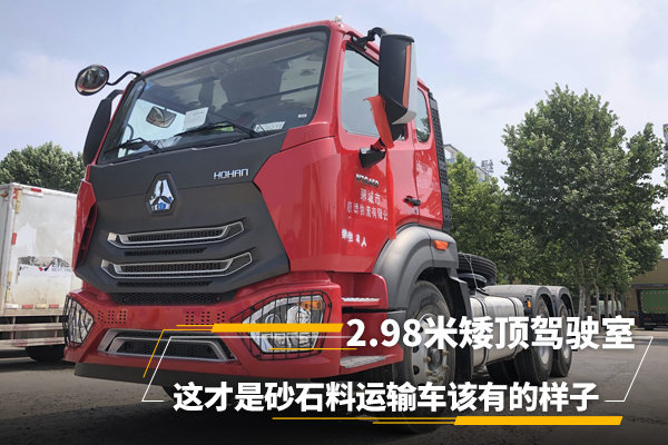短途砂石料运输的卸货地点、路况极其复杂,所使用的这款整车高度不超过2.98米的矮顶排半驾驶室通行能力有保障。