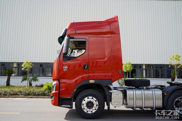 这款车车架高度为282单层mm,速比为3.7。悬架的板簧采用2/3(前2后3)的形式,在动力良好的情况下,还能保证一定的承载能力。经济性小速比搭配460马力潍柴发动机和12挡法士特变速箱完全可以多拉快跑。