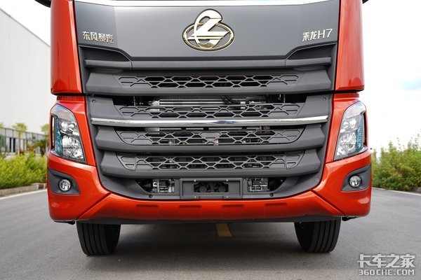 前脸采用U型设计,全黑面板的中间一条银色镀铬装饰条点亮了整个前脸,视觉冲击感十分强烈。中网是采用百叶窗式进气格栅,这样设计的好处是增添美观的同时减少雨水进入前面罩内部的可能。“东风柳汽”“乘龙H7”以及“龙”型车标等标识都采用金色颜色设计,突显其高贵气质。
