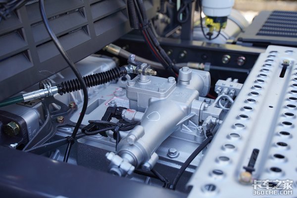 与之匹配的是法士特12JSD200TA-B变速箱,前进挡为12个,倒档数为2个。采用铝制壳体,相比普通钢铁材质变速箱,自重能降低一大截。还可以选配液力缓速器,有了它之后,在长下坡路段可以不用淋水就能更好地控制车速,更加安全。