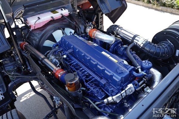 关于全车轻量化设计方面,采用轻量化发动机、轻量化440桥、2/3轻量化板簧、前轮铝合金钢圈等轻量化配置,最低自重达8.05T。