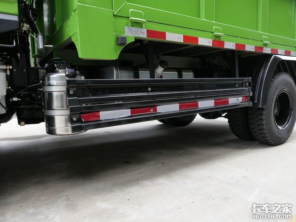 在气驱尿素系统旁边,还有一个铝合金的油箱,相比铁质和塑料油箱,铝合金油箱更结实、更耐腐蚀,质量上也有不小的优势。