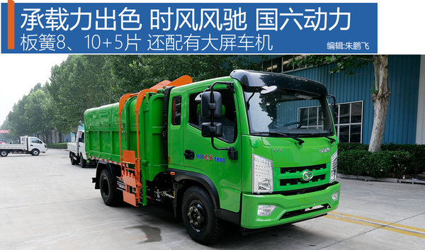 后桥悬架为主副结构,具体为主弹簧10片,副弹簧5片的多片簧,承载能力强悍,能够轻松满足垃圾清运车的工况需求。