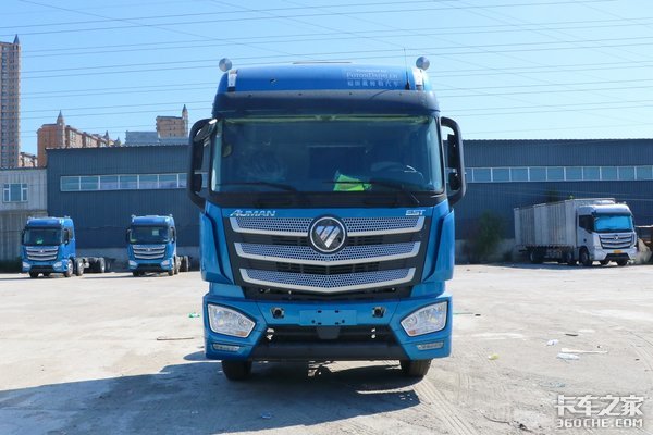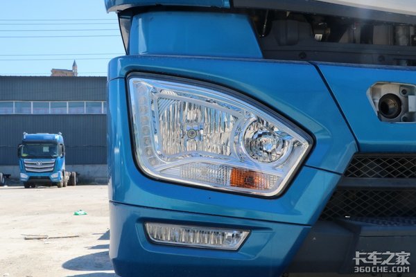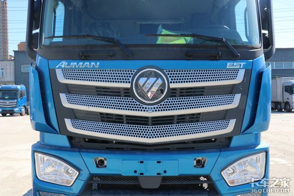这款欧曼EST外观采用天蓝色的涂装设计,可能是我见识短,真的很少在路上见到这种涂装的车型,这种涂装颜色对于还比较年轻的我来说绝对印象深刻。车头的顶部两侧,装置着气喇叭,很有欧洲卡车的味道。