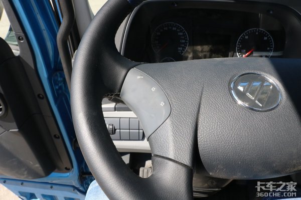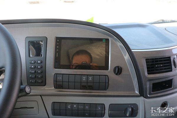采用高顶双卧驾驶室,内饰选择深色+灰白色的颜色搭配,车内气氛不会觉得压抑。可以看到驾驶室中间有隆起,可能会对驾驶室内的空间带来一定的影响,但幅度不是很大,在接受的范围之内。