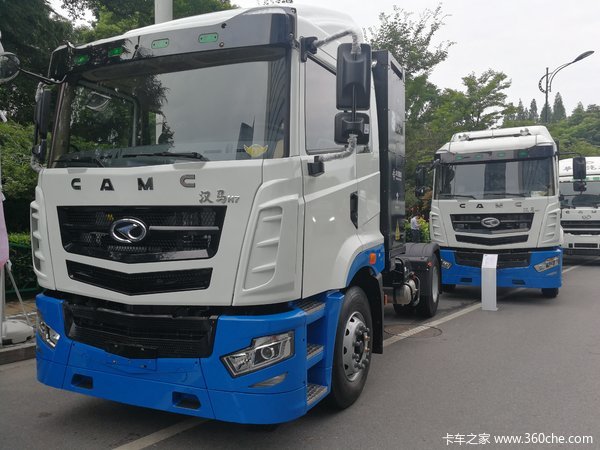 纯电动4x2牵引车电机额定功率120kW,峰值功率200kW;额定扭矩800N.m,峰值扭矩1700N.m,匹配9挡AMT变速器,最大车速可达85km/h,最大爬坡度20%,工况法续航里程150~170km。