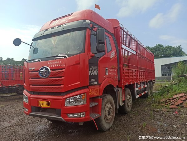 驾驶室采用的是J6P高顶双卧铺驾驶室,经典的造型在路上有很高的辨识度。高顶驾驶室用在前四后八载货车上,更显得车辆的高大,而且驾驶室几乎与后方仓栏货箱平齐,能够减少风阻,降低油耗。