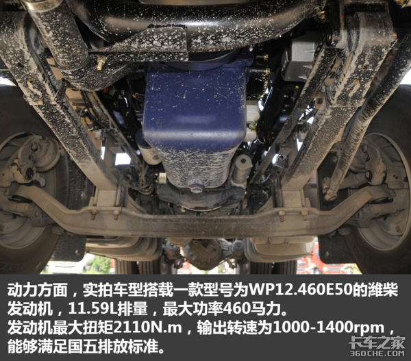 对于高速快运场景下对动力的需求,大马力低速比成为当前的主流趋势,实拍车型搭载了潍柴460马力黄金动力链,在稳定性及动力性上达到了很好的平衡。