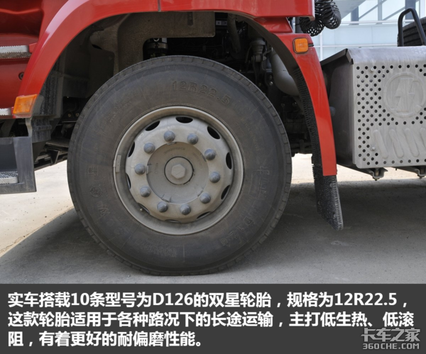根据发动机转速、变速箱最高挡速比、后桥速比和轮胎型号,通过卡车之家车速计算器得出,这款车在1000-1400转的经济转速区间下,经济车速范围是68.7-96.2km/h,从整套动力总成能够看出实拍车型主打的还是高速快运。