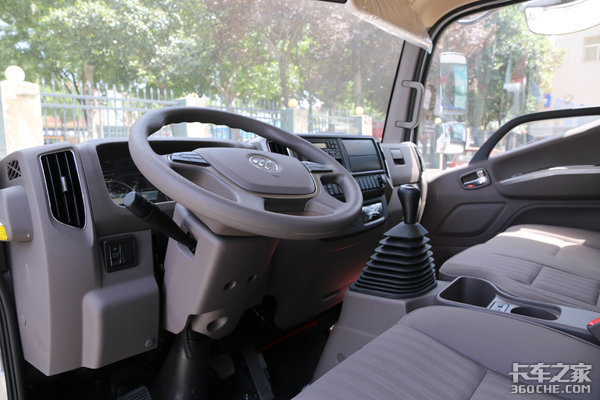 驾驶室依然是简洁实用的朴素风格,整体的功能区及按键布局讲究实用,内饰以棕灰色相间色调为主,在原来基础上增加了增加了配色选择。