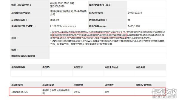 该车最大的一个亮点就是,搭载了国六康明斯15升燃气发动机,型号为15NNS6B530A,最大输出功率390千瓦/530马力,动力表现十分抢眼。另外,车辆还配备有EBS系统,在制动性能和行车安全上更有保障。