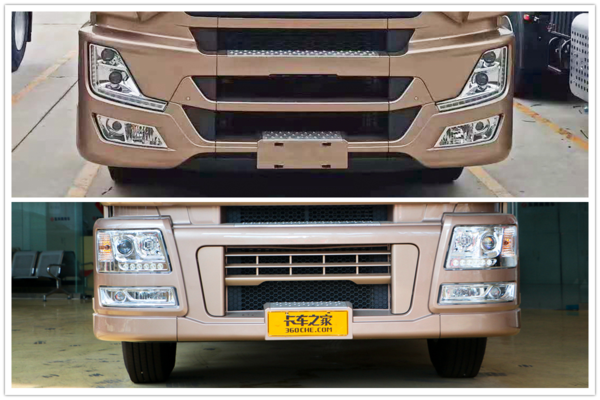 而此次曝光的这款天龙KX,在外观的一致性上更高了,土豪金的涂装区域更大。并且,仔细看,两侧的导风槽也有了新造型,体积更大,这样的设计和市面上不少重卡都比较相似。