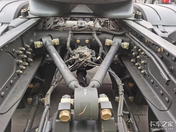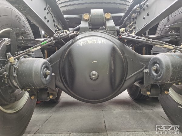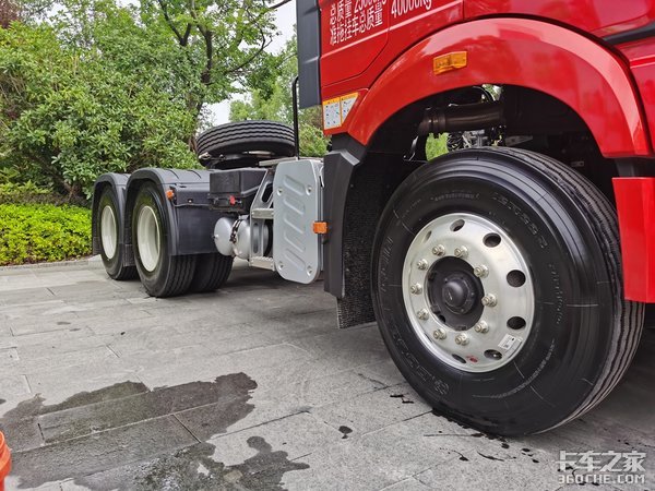 该车车架高度为300×80×8mm,3/3少片簧悬架。驱动桥采用435冲焊桥,速比为3.727。轮胎则是装配的12R22.5型号的朝阳牌真空胎。