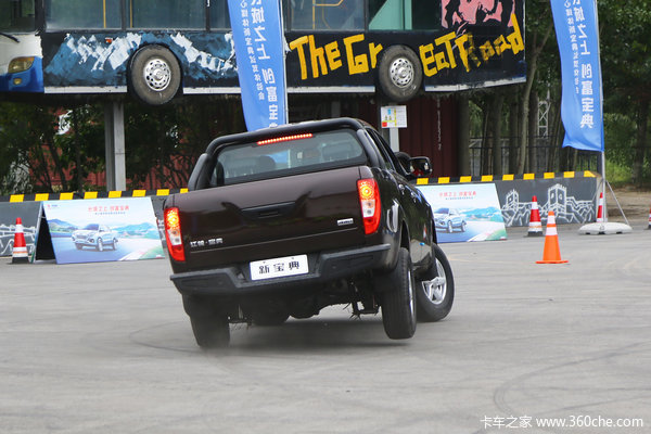 在场地中,新宝典由专业驾驶教练进行激烈的绕“8”字驾驶。在车速大约60公里每小时的情况下,车辆的悬架被充分挤压,后轮甚至脱离了地面的束缚。虽然看起来惊险,但是这台皮卡仍然没有失控的迹象。