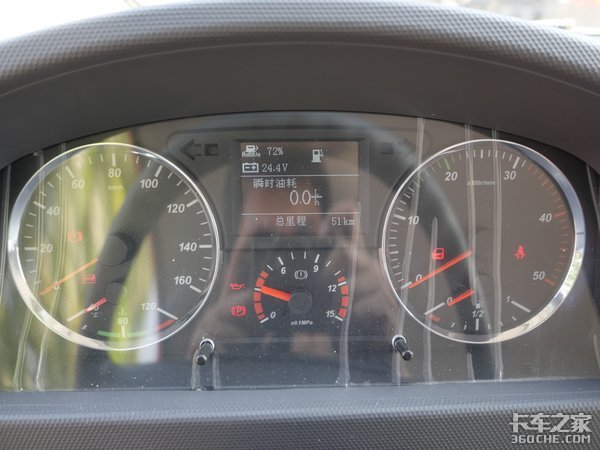 仪表盘采用了机械指针+液晶显示屏的组合。右侧为时速表和水温表,中间为液晶屏和气压表,右侧为转速表和油量表。
