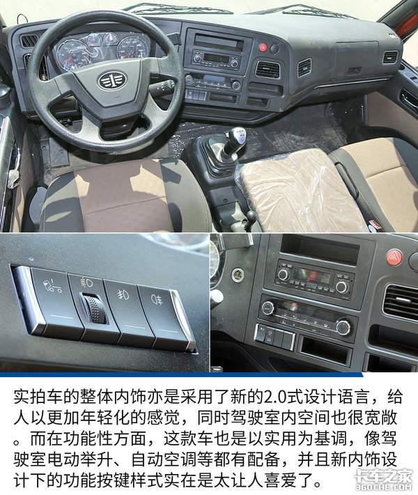 此外车辆驾驶室顶部的遮阳板也较上一代车型进行了上移,使得驾驶员拥有更加广阔的前方视野,提升行车安全。