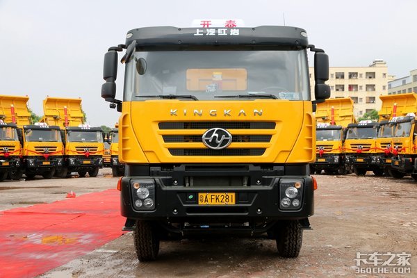 实拍车为5米6的上汽红岩金刚C500自卸车,该车是上汽红岩根据施工工地、企业驻地以及渣土车运营场景的特点而研发,这是一款在车型外观、上装、驱动形式以及排放标准方面等都符合广州最新标准的全新渣土车。