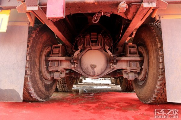 鉴于工程车一般都是短途多趟往返行驶,装配一个300升铝合金油箱能够满足使用。油箱外侧采用了锁扣设计的金属挡板,能够起到一定的方碰撞效果,同时又能防止工地的泥水飞溅弄脏。