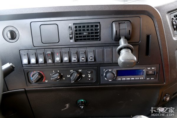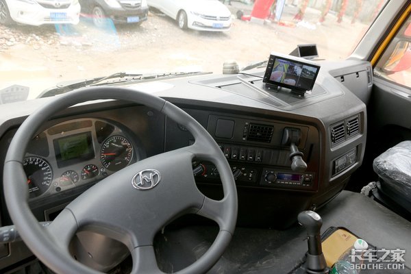 环绕式中控台操作更便利,该车配置轴间、轮间差速锁,能够让车辆行驶在复杂泥泞的路况。中间是定速巡航功能按键,对于城市渣土车而言,可能该功能使用的频次不会太高。
