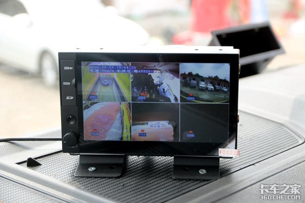 中控台上这块是车辆智能管理终端,可以进行各种智能操控,包括实时投影视频监测画面的状态,因为广州对渣土车辆强制要求全车至少需要五个摄像头。