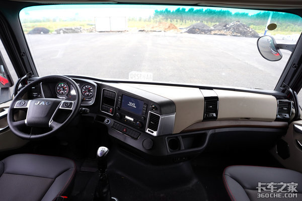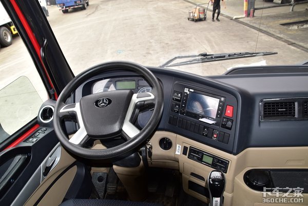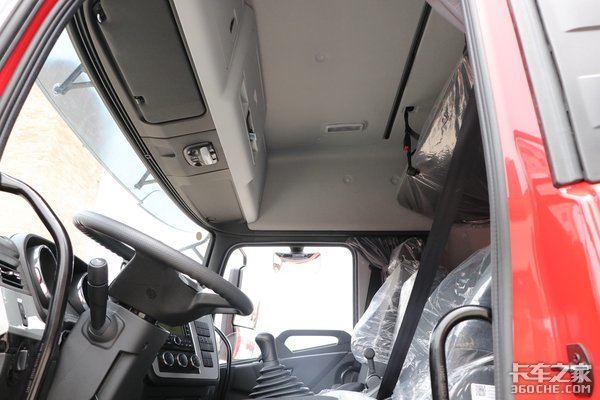 在高顶双卧驾驶室的加持下,整车高度有了明显进步,车内空间更加宽敞,尤其是站立的时候,不会感觉到顶头。配置方面,带有座椅通风、定速巡航、滤芯加热、多功能方向盘、蓝牙、多媒体大屏(支持行车记录仪、多媒体以及导航等功能)、后视镜加热等。