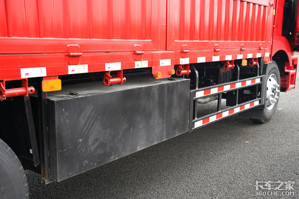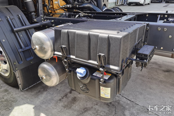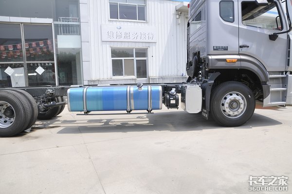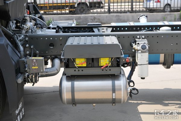 车辆左侧的储气罐和蓄电池采用一体式结构设计,为车架留出了更多空间,便于卡有后期改装使用。