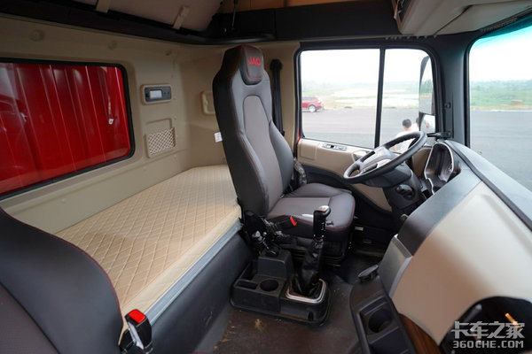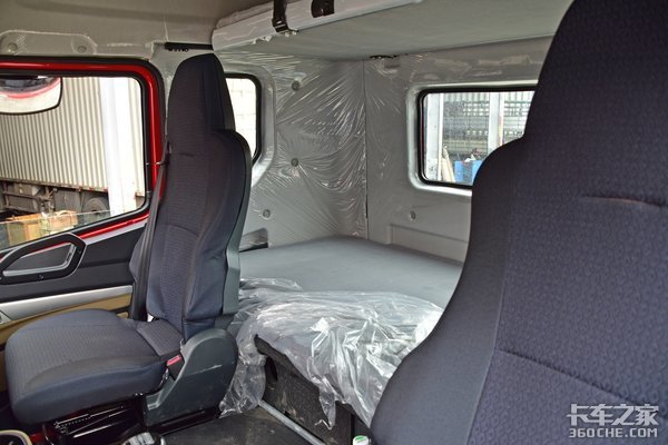 高顶双卧驾驶室设计,保证了充裕的头部空间,可以轻松在车内站立,很好解决了双人休息问题,符合卡友实际需求。值得一提的是,这款车下卧铺可以通过旋转副驾座椅,组合成更加宽大的“大床房”,睡觉再也不用担心翻身等问题。
