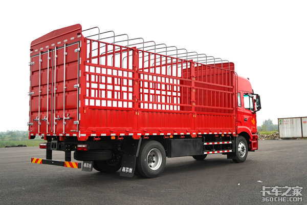 传动系统方面,该车匹配法士特8JS95E-C 8挡手动变速箱,具备超速挡,最高挡位速比0.79。轮胎规格275/80R22.5,搭载9吨级后桥,速比4.36,整车具备了不错的承载性能,无论是跑生鲜绿通还是中短途运输,都能轻松胜任。