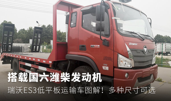 随着国六排放标准的来临,福田瑞沃专用车早已提前完成布局,实现了国六车型全覆盖,其产品涵盖环保类专用车和工程类专用车。今天,我们为大家带来这款国六版瑞沃ES3低平板运输车,采用潍柴国六发动机,主要面向中小型工程机械运输。