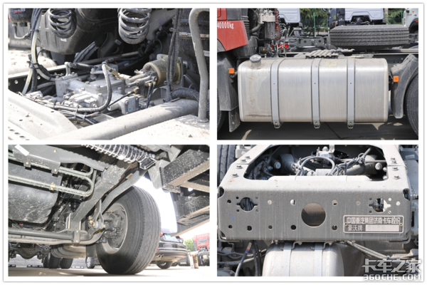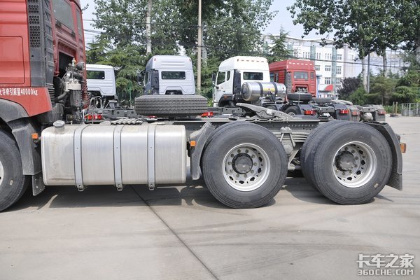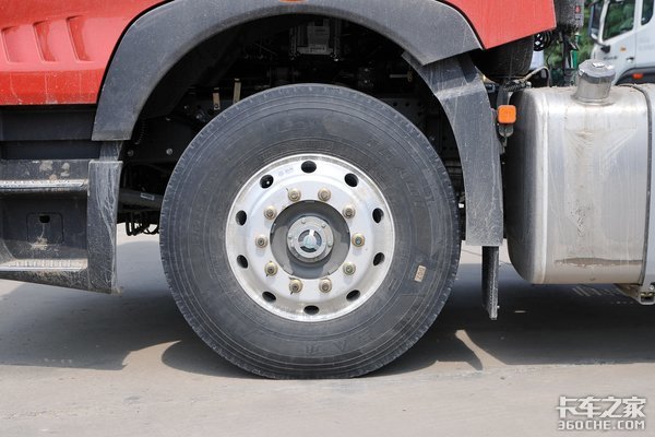 轮胎规格为12R22.5,带有免维护轮端,维护简单轻松。根据变速箱最高挡速比0.78、轮胎规格12R22.5、后桥速比3.7,通过卡车之家车速计算器得出,在1100-1300转的经济转速区间内,车速为75-88公里/小时。