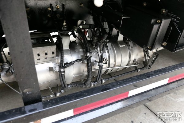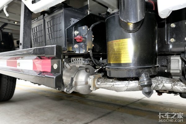 作为一台国六轻卡,后处理体积并没有像重卡一样庞大,而是整体非常规整的布置在了底盘下方,要知道国六的后处理都不便宜,这样的话能够很好让后处理免受伤害。