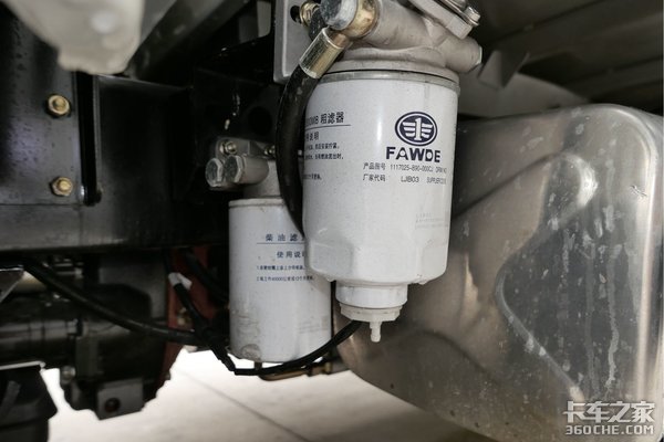 油箱后方为燃油滤清器,粗滤细滤放置在一起,对于后期维修保养可以提供一定便利。在这再给广大卡友提个醒,后期保养车辆时一定要使用原厂备件,千万不要贪图小便宜,最后可能会吃大亏。