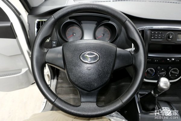 来到驾驶室内部,首先映入眼帘的是一款三幅式方向盘,考虑到该车的多为短途运输,同时主打超高性价比,有一些舒适性配置也就可以相应省略了,毕竟这些配置也无伤大雅。