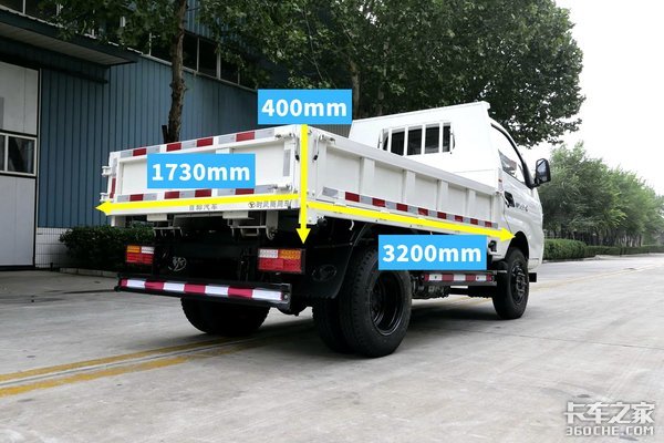 在文章最后,咱们来看看风云C自卸版的货厢,这台车使用了一款长、宽、高分别为3200×1730×400(mm)的宽大货厢,可以完美装下2.1方土或砂石料,这对于一台轻卡来说还是有绝对优势。
