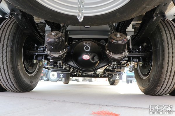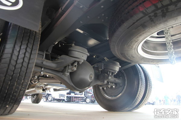底盘方面,悬挂采用前3后5+3的设计,前桥允许载荷是1790kg,后桥允许载荷是2705kg,速比是4.875。