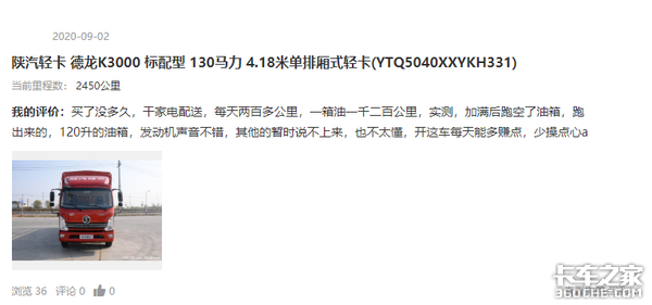 据卡友介绍,他购买此车主要是为了跑绿通,这款车在动力以及承载力方面还不错,车辆的运转效率也比较高,120L油大概可以跑到一千二百公里,燃油消耗率表现不错。