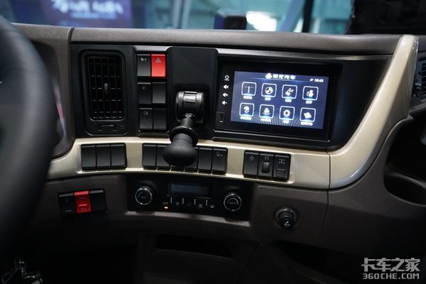 环绕式中控台,配备有10.8英寸的显示屏,可以实现收音机、音乐、视频以及手机互联和360全景显示等功能,而且存储有使用手册,对于不会操作这些功能的卡友来说非常贴心。也可以选装12寸竖屏。