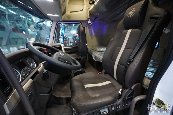 驾驶椅装有气囊减震装置,可以实现座椅前后、高低以及仰角调节,方便驾驶员找到最合适的驾车角度,并且使用的是皮质材料,乘坐舒适性更好。安全带使用的是一体设计,避免车辆在颠簸过程中划伤皮肤。