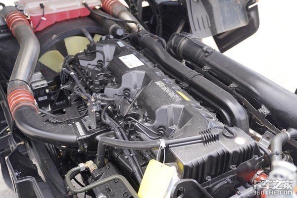 实拍车辆使用的发动机型号是东风康明斯Z14NS6B600,排量是13.48L,最大输出功率是600马力(441kw),峰值扭矩可以达到2750牛米,排放标准符合国六要求。