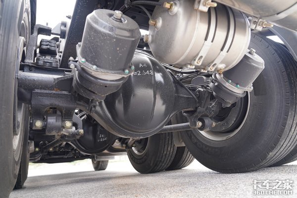 后桥采用的是2×440康迈后桥,速比为2.643。小速比后桥以及直接挡变速箱,使发动机转速在1100转的时候,就可以达到82km/h的巡航时速。