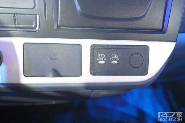 在空调开关左边,还配有2个5V USB充电口,不仅免去了车主自己加装充电器的烦恼,提高了驾驶室安全系数,而且可以同时满足给两部手机等设备充电。驾驶室储物空间多达18处,满足对收纳的需求。