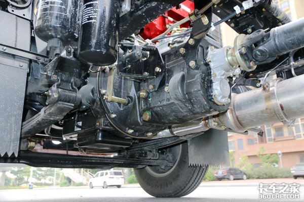 与发动机匹配的是一款万里扬WLY6G40 6挡手动变速箱,可以看到变速箱带有摆锤设计,能够增加换挡时的吸入感。这款万里扬6挡变速箱广泛用于轻卡车型上,能够适应多种路况,维修保养上也很方便。