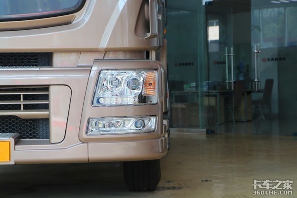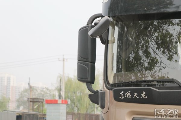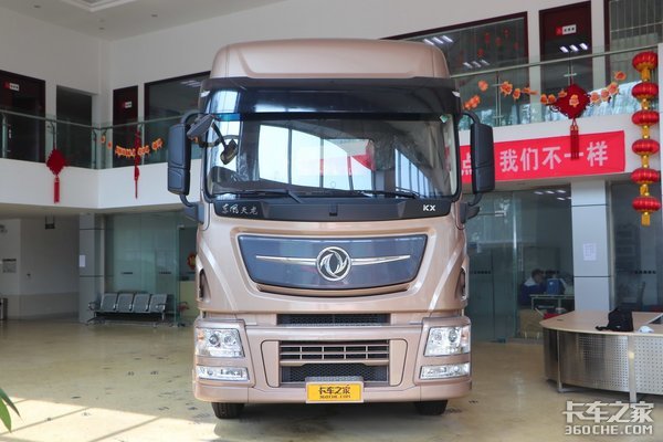 天龙旗舰KX,使用家族化设计风格,整车线条比较流畅,拉花从大灯处开始,一直延续到侧驾驶室门框顶部,整车更加具有美感。