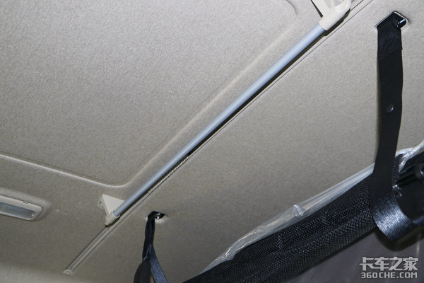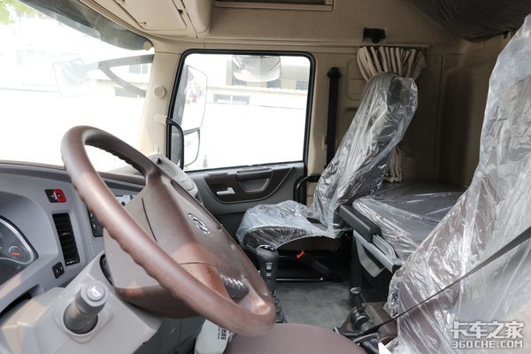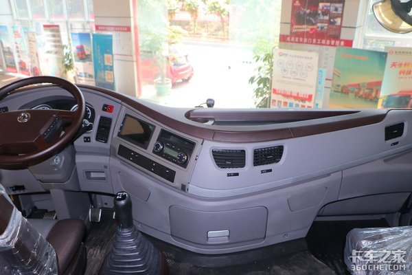 四点空气悬浮驾驶室,使驾驶室具有良好的平顺性,降低驾驶室行车过程中产生的颠簸感。内部采用平地板设计,并且在中控台、门把手等处,大量使用棕色仿木质设计风格,看起来比较上档次,可以让驾驶员保持良好的心情。