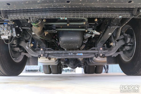 使用前三后四的钢板弹簧悬架结构,配备速比是3.64的440后桥,不仅有效地降低了整车自重,还保证了整车的承载力。
