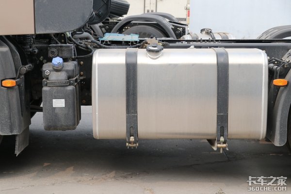 油箱使用的是双油箱设计,左油箱为主油箱,容积在600L,右油箱为副油箱,容积在250L,油箱外壳均为铝合金材质,既满足轻量化需求,又达到了长续航能力。而且油箱带有加热功能,可以满足冬天行车需求,提高了运输效率。